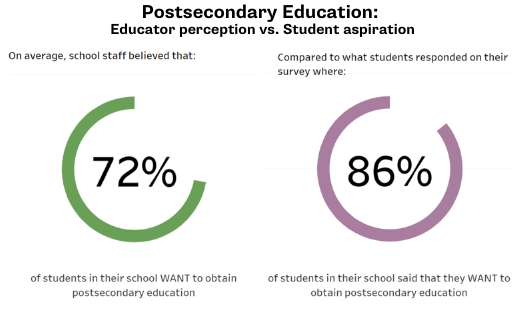 “Educators’ plates are more than full with teaching content, addressing the long-term impact of the pandemic, and so on—so it’s not surprising to see the gap between student aspirations and what teachers know about those aspirations. The good news is, when educators see these data they want to work together to make changes in school culture and practices,” said Peterman.