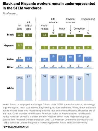 Students absorb all sorts of messaging about who belongs in which careers, and the result is women are still underrepresented in the physical sciences, computer and engineering jobs and only 7% of STEM degrees go to students of color.