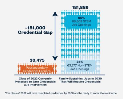 Additionally, when it comes to future jobs, by 2030, 96% of family-sustaining jobs in our state will require a credential after high school—that is, a two-year or four-year degree or a certificate.